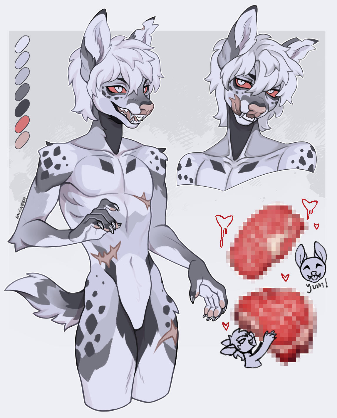 - Do not use the character for zoo art (aka feral nsfw), babyfur, hate speech or any harmful fetish. If drawing nsfw, use human anatomy....